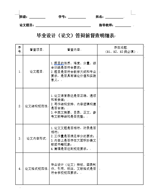 附件1. 畢業(yè)設(shè)計(jì)(論文)答辯前督查明細(xì)表.docx