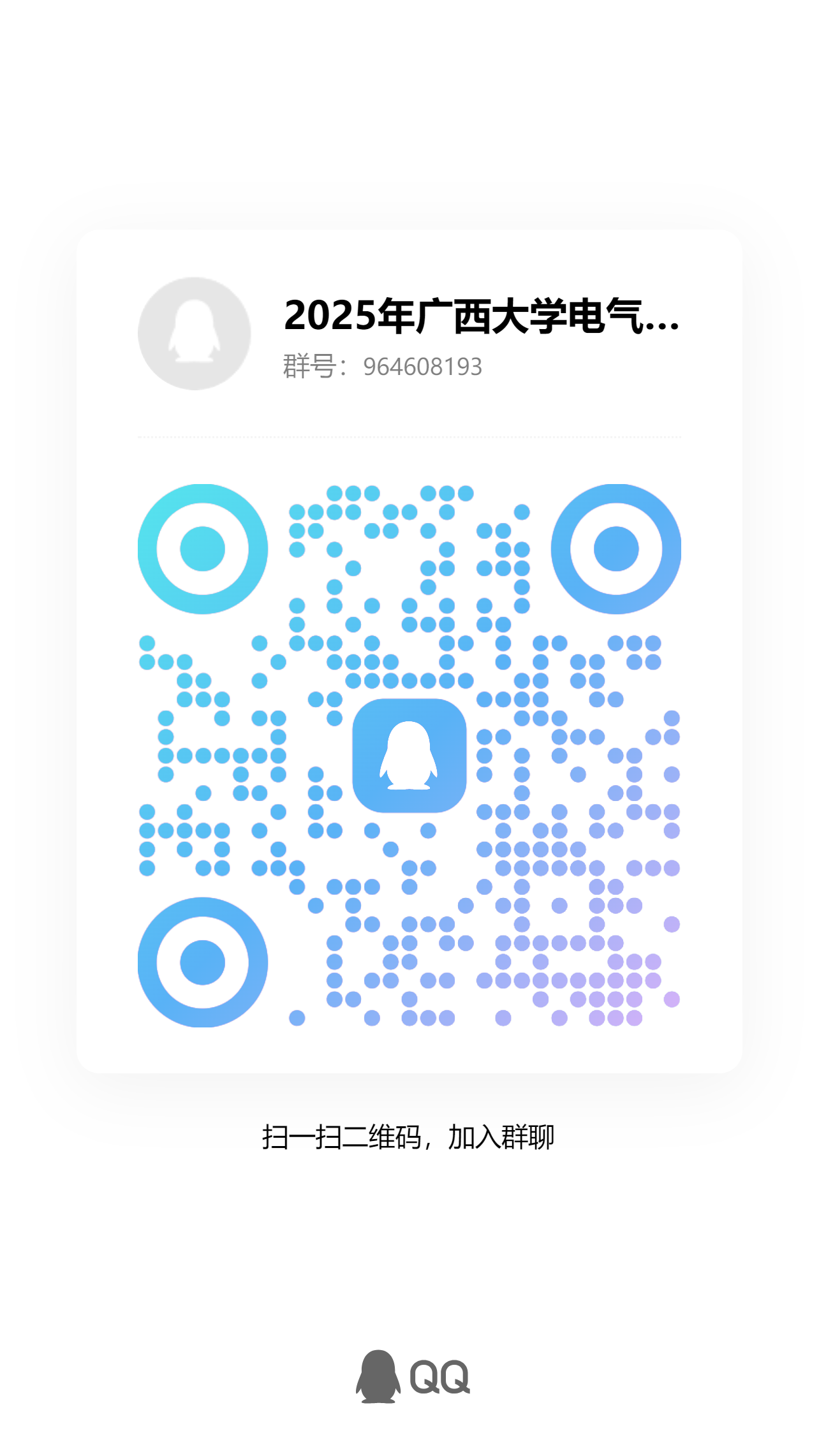 廣西大學(xué)電氣工程學(xué)院2025年招生宣傳QQ群號(hào)碼:964608193