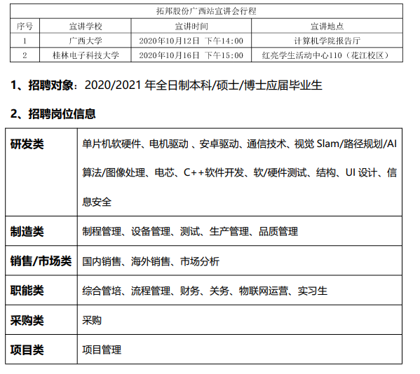 深圳拓邦股份有限公司2021屆校招于10月12號下午14:00在廣西大學計算機學院報告廳開展線下宣講。