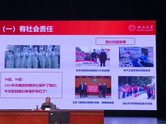 其次是“不負(fù)韶華,做青春起跑線上的領(lǐng)跑人”。劉書記先肯定了我們2020級大學(xué)生生于非典,考于疫情,終上大學(xué)的不易和高中時代的優(yōu)秀正直的品格、自立自主的學(xué)習(xí)態(tài)度。接著引用莎士比亞“凡為過去,皆為序章”的名言,警示我們不要沉溺過往,應(yīng)當(dāng)把握當(dāng)下,展望未來,認(rèn)真規(guī)劃自己的大學(xué)生活,充實過好每一天,不負(fù)青春韶華,當(dāng)如毛主席所言“自信人生上百年,會當(dāng)水擊三千里”,以吾輩之才,勇?lián)彷呏?zé),圓夢未來。