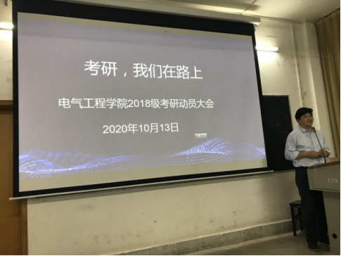在電氣工程學(xué)院2018級(jí)考研動(dòng)員大會(huì)上,學(xué)院主管研究生工作的副院長(zhǎng)劉輝教授從考研的目的、考研的難度、學(xué)碩與專碩、時(shí)間安排和考驗(yàn)準(zhǔn)備等方面為大家提出了寶貴的建議。劉輝副院長(zhǎng)強(qiáng)調(diào),考研貴在堅(jiān)持與專注,絕不能三天打漁兩天曬網(wǎng)。
