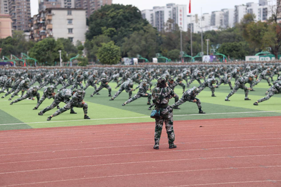 最后教官方隊(duì)來了,他們左手持盾,右手持軍棍,排列成整齊的隊(duì)列,氣勢(shì)如虹,他們時(shí)而變化隊(duì)列,時(shí)而用手中的軍棍擊打盾牌,發(fā)出了雄厚的聲音,他們是太陽,在和平年代燃燒自己來守護(hù)祖國;他們是健松,庇護(hù)著我們。正是他們,我們才能夠在一個(gè)和平的氛圍中學(xué)習(xí)工作。向他們致敬!