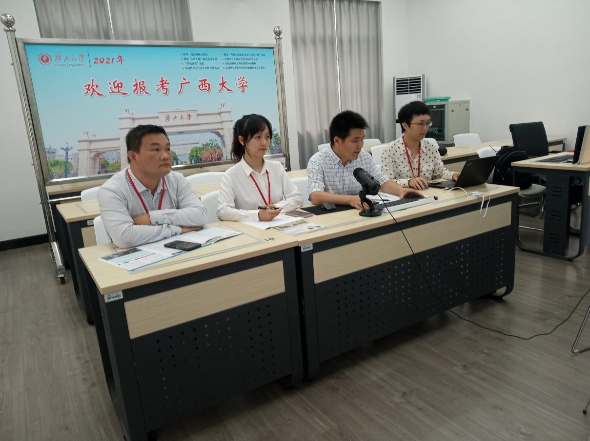 為豐富招生宣傳的工作面,學(xué)院在線下開展定向精準(zhǔn)招生宣傳的基礎(chǔ)上,利用QQ招生咨詢?nèi)骸⒕W(wǎng)絡(luò)直播、咨詢電話等形式,為考生及家長提供高效快捷的線上招生咨詢服務(wù),雙線結(jié)合,創(chuàng)新招生工作載體。6月26日,自治區(qū)招生考試院在廣西IPTV(電視機(jī)頂盒)專門設(shè)置了網(wǎng)上咨詢會板塊,學(xué)院領(lǐng)導(dǎo)胡立坤教授、自動化系主任李修華副教授、電氣工程系主任吳暉煌教授,學(xué)工組老師韋俞妃參與了廣西大學(xué)電氣工程學(xué)院網(wǎng)上咨詢會直播專場。通過廣西招生考試院平臺進(jìn)行線上直播方式與廣大考生及家長互動,采用“語音視頻直播+彈幕互動”的直播形式,實時與200人次的考生及考生家長進(jìn)行交流、解答。