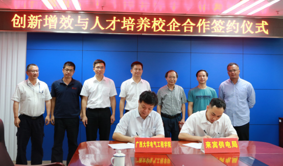 座談會(huì)后,電氣工程學(xué)院黨委副書記梁志堅(jiān)和來賓供電局總經(jīng)理蒙恩代表雙方在校企合作協(xié)議上簽字。