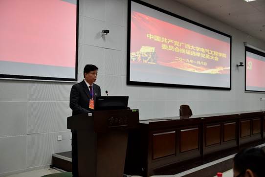大會主要內(nèi)容包括:一、聽取和審議中國共產(chǎn)黨廣西大學電氣工程學院委員會工作報告,審議黨費收繳、使用情況報告;二、選舉產(chǎn)生中國共產(chǎn)黨廣西大學電氣工程學院新一屆委員會,選舉產(chǎn)生中國共產(chǎn)黨廣西大學電氣工程學院第一屆紀律檢查委員會。
