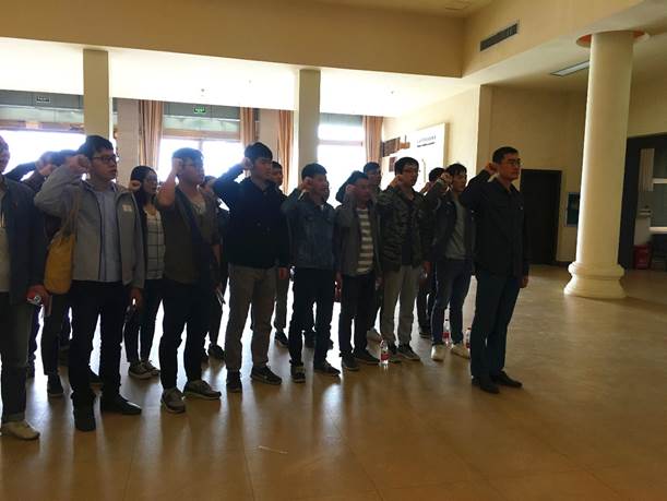 參觀結(jié)束后,研六支部全體黨員在黨旗前進(jìn)行入黨宣誓,重溫入黨誓詞。此次緬懷革命先烈,不僅讓我們了解到許多光榮的革命事跡,也更讓我們學(xué)到了優(yōu)秀的精神品質(zhì)。