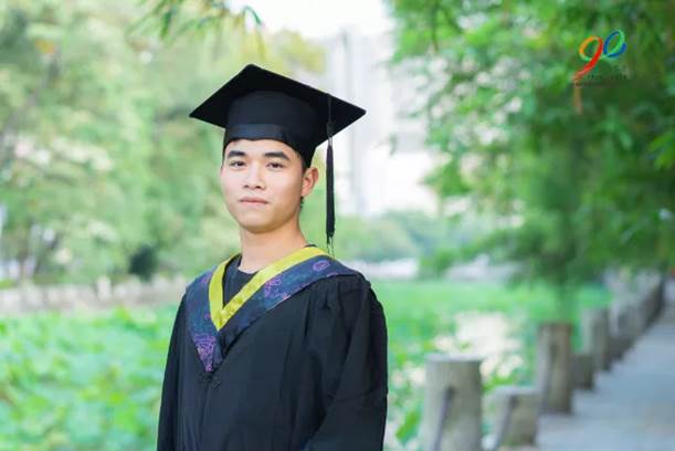 神采飛揚地穿上了翹首以盼的學士服