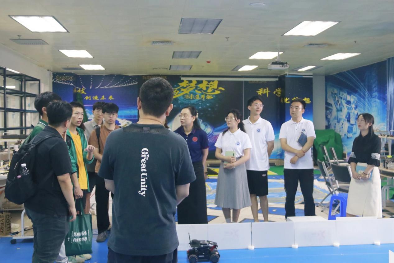 首先,中山大學微電子學院師生到學校綜合樓參觀眾創(chuàng)空間。李勇老師介紹我院學生近年來參加競賽的情況,以及“模擬去太空進行月球上的探索”的相關實驗和有關自動化器械等知識,展示了我院濃厚的學術科創(chuàng)氛圍。