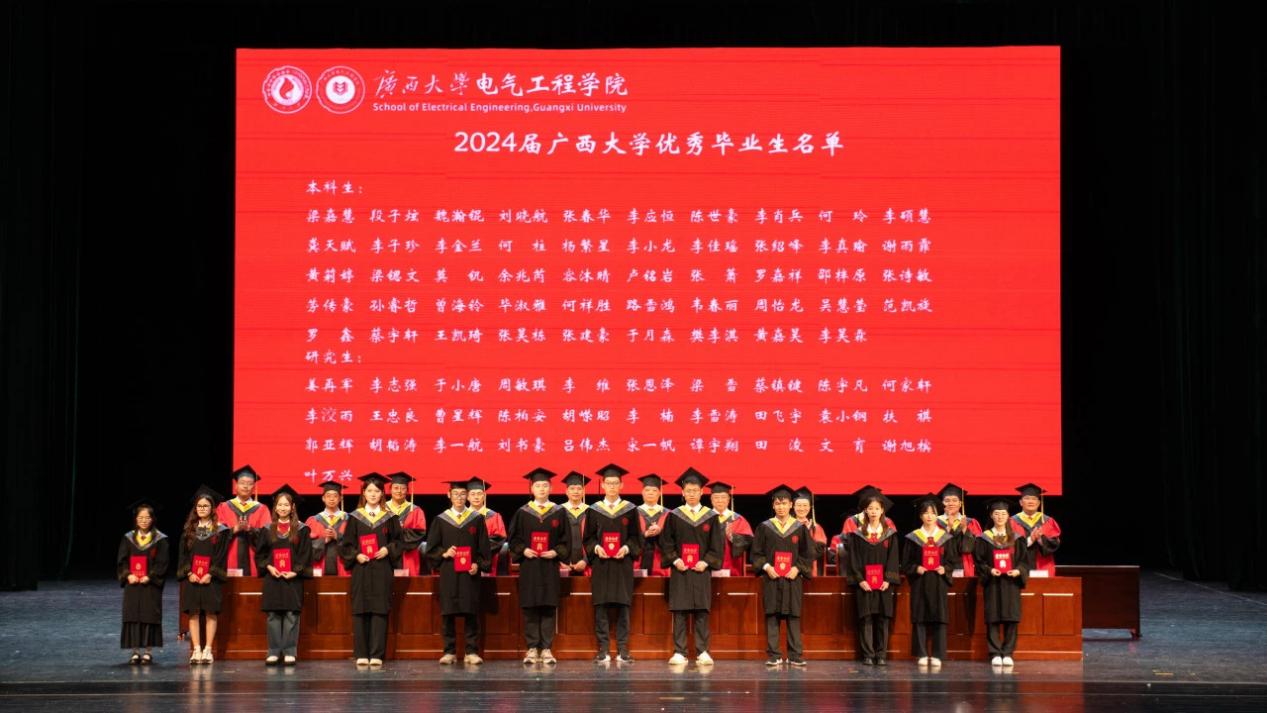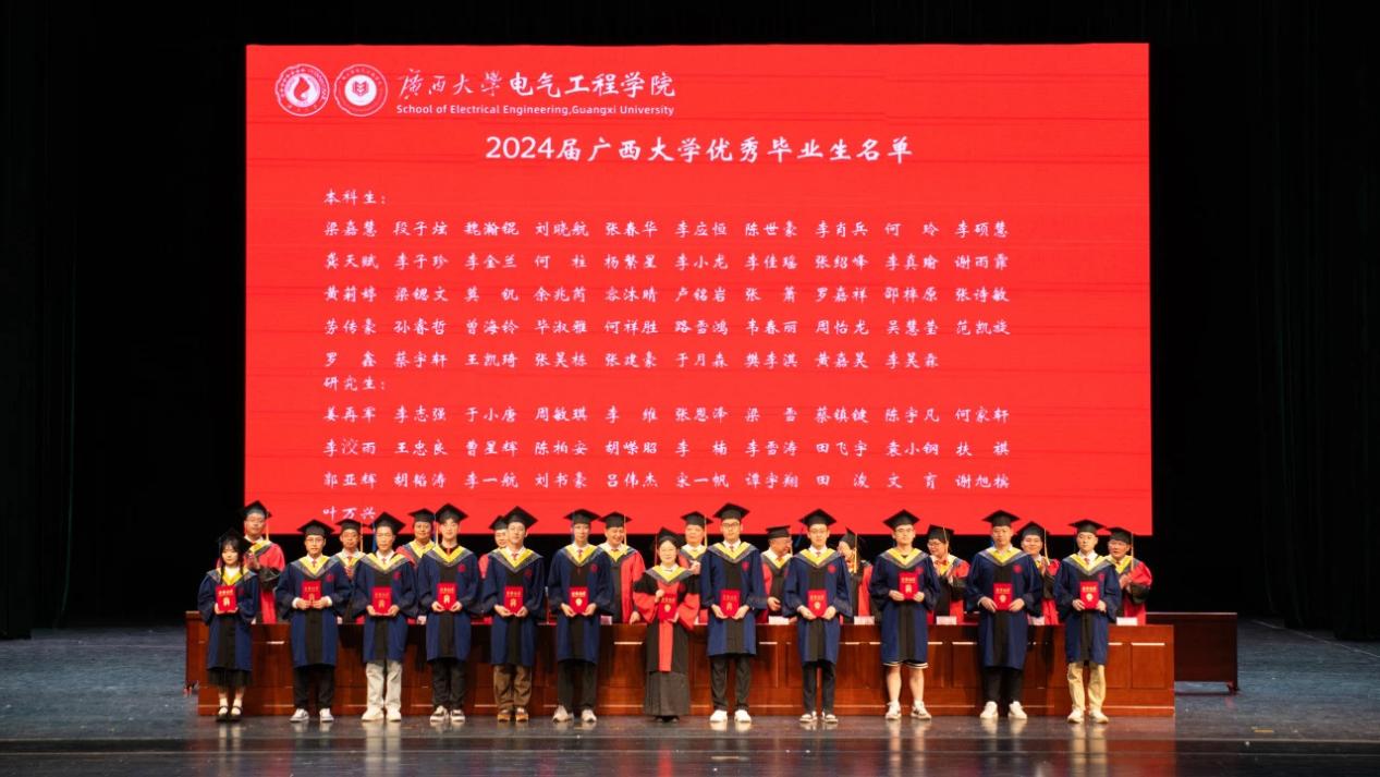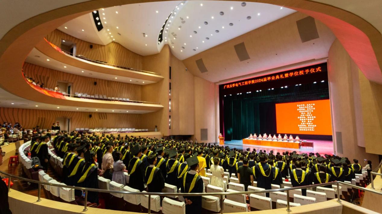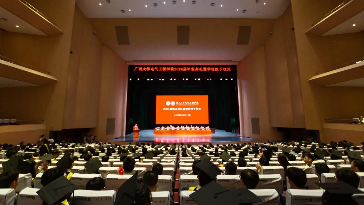 鳳凰花開,驪歌漸起。6月25日上午,廣西大學(xué)電氣工程學(xué)院在匯學(xué)堂舉行2024屆畢業(yè)生畢業(yè)典禮暨學(xué)位授予儀式。學(xué)院黨委書記梁志堅,院長武新章,院黨委副書記、副院長劉輝,校黨委組織部副部長雷圓媛,院黨委副書記李道洋,校研究生院副院長黎靜華,校教務(wù)處教師教學(xué)發(fā)展中心副主任胡立坤,校發(fā)展規(guī)劃處副處長張鐿議,學(xué)院副院長于婷、副院長李畸勇,學(xué)院院長助理、君武學(xué)者吳暉锽,研究生導(dǎo)師代表、畢業(yè)班班主任、教師代表和全體輔導(dǎo)員等出席畢業(yè)典禮暨學(xué)位授予儀式,李道洋副書記主持活動。