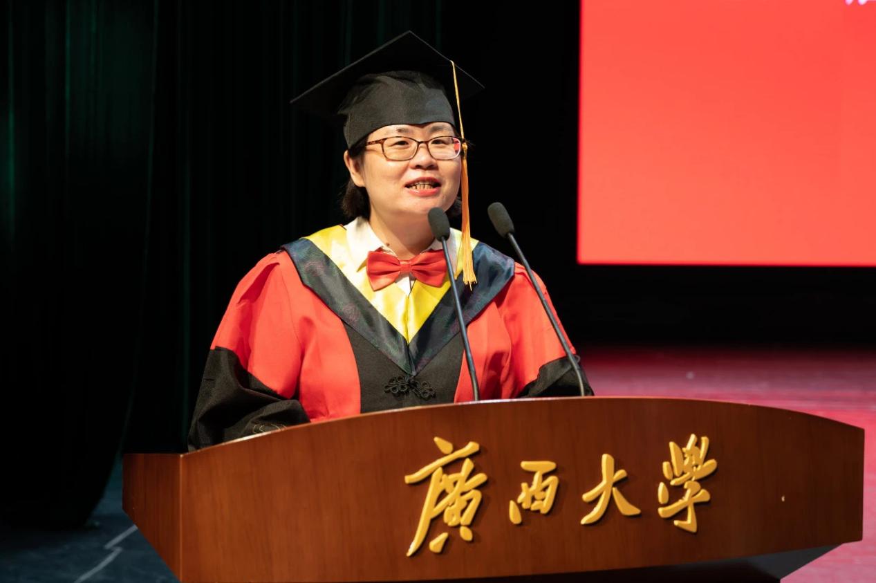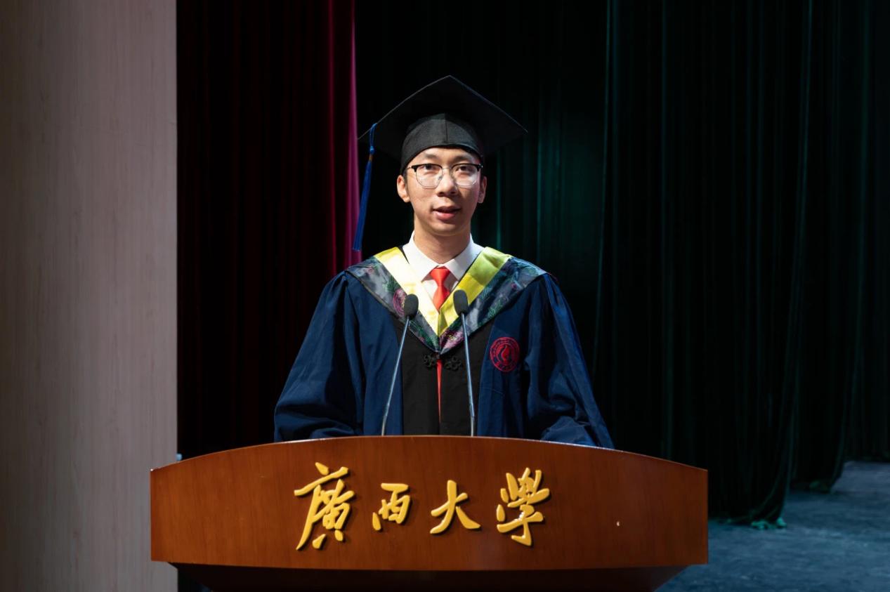 院黨委書記梁志堅宣讀2024年學(xué)位授予文件以及自治區(qū)級、校級優(yōu)秀畢業(yè)生表彰文件,學(xué)院領(lǐng)導(dǎo)老師為獲得“廣西壯族自治區(qū)優(yōu)秀畢業(yè)生”“廣西大學(xué)優(yōu)秀畢業(yè)生”的學(xué)生代表頒發(fā)證書。