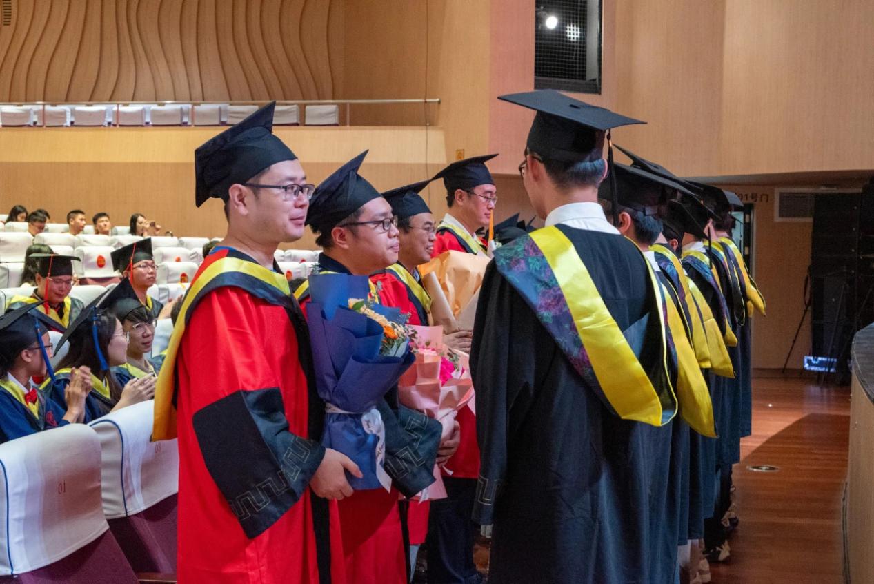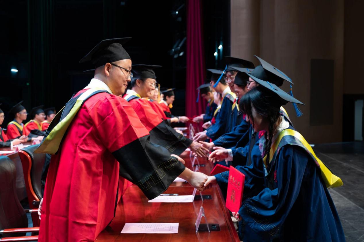 在熱烈的氣氛中,梁志堅書記,武新章院長,劉輝副書記、副院長,黎靜華教授,胡立坤教授,張鐿議教授,李畸勇副院長為2024屆博士畢業(yè)生、碩士畢業(yè)生、本科畢業(yè)生授予學(xué)位,畢業(yè)生們分批上臺接受撥穗并合影留念。