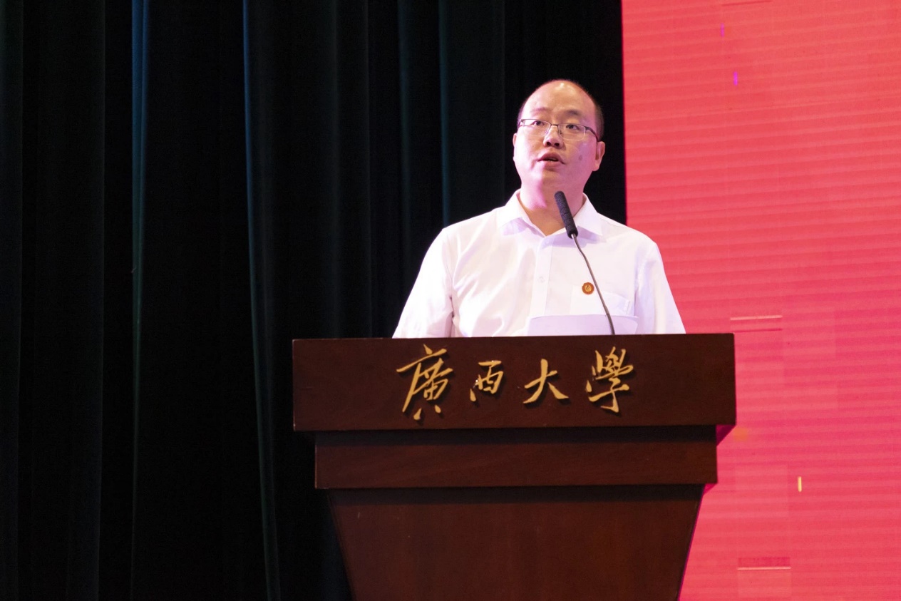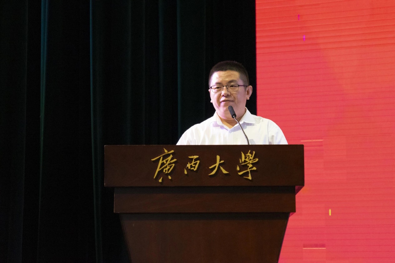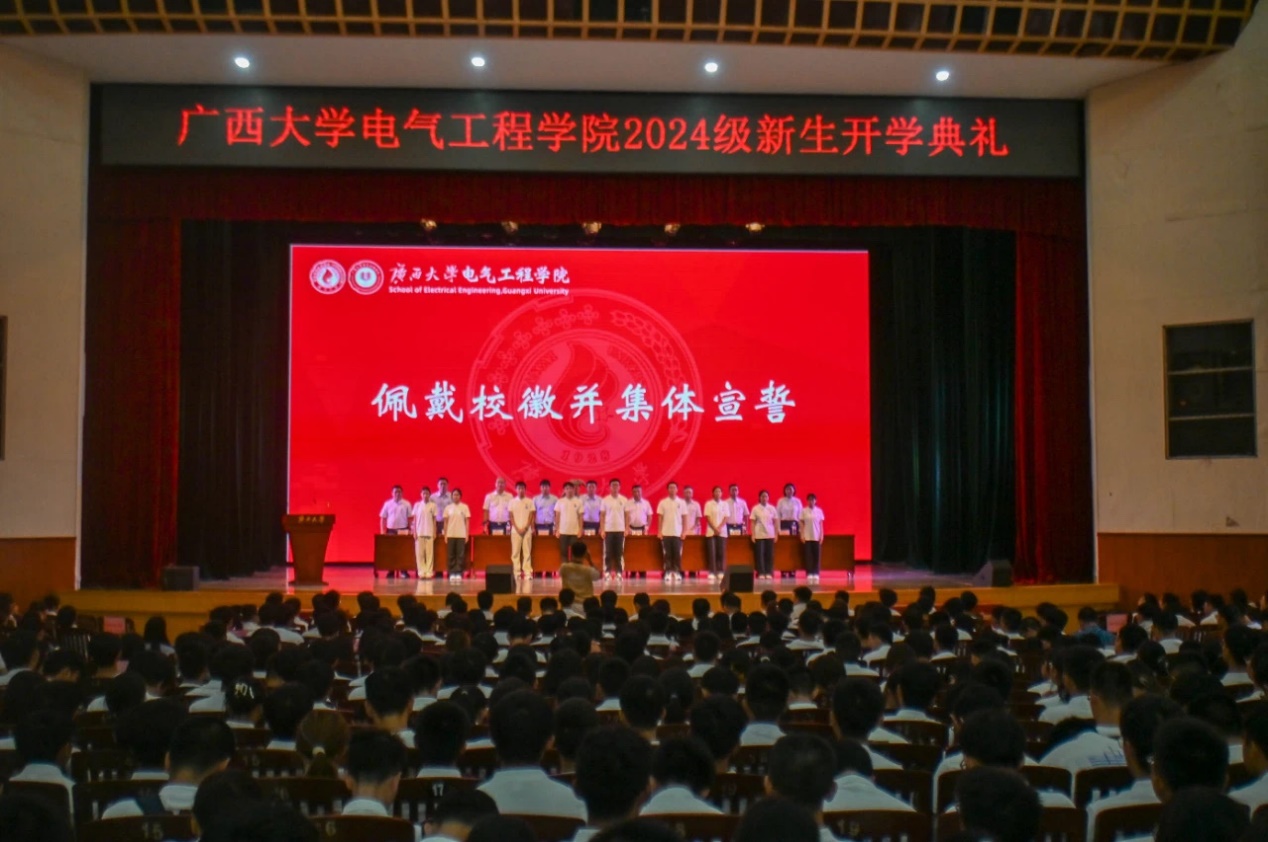 典禮上,學(xué)院領(lǐng)導(dǎo)老師為新生代表佩戴校徽,期望新生弘揚(yáng)“創(chuàng)新創(chuàng)造、奮勇爭(zhēng)先、全面一流”的廣西大學(xué)“雙一流”精神,與新時(shí)代同向同行、共同前進(jìn),努力爭(zhēng)做堪當(dāng)民族復(fù)興重任的時(shí)代新人。