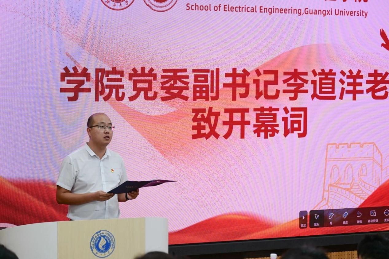 正式會議第一階段,學(xué)院黨委副書記李道洋老師致開幕詞,李道洋老師向會議的召開給予熱烈的祝賀與美好的祝愿。他代表學(xué)院黨委對同學(xué)們提出三點希望:一是強化思想引領(lǐng),要引導(dǎo)同學(xué)們自覺將個人命運與國家命運相連,繼承紅色基因。二是聚焦本職工作,希望同學(xué)們履職盡責,從小做起,從實做起。三是練就過硬本領(lǐng),希望同學(xué)們在工作中錘煉意志、磨煉性格、鍛煉能力,踐行電氣學(xué)子的擔當。
