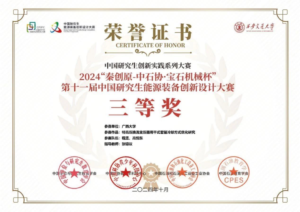 據(jù)悉,該賽事由中國學(xué)位與研究生教育學(xué)會(huì)、中國科協(xié)青少年科技中心、中國石油和石油化工設(shè)備工業(yè)協(xié)會(huì)和中國石油教育協(xié)會(huì)主辦。它創(chuàng)辦于2014年,是我國能源裝備領(lǐng)域最具有權(quán)威的綜合類賽事,也是教育部大學(xué)生學(xué)科競賽排行榜A類賽事之一。本屆大賽以“創(chuàng)新能源裝備·人才引領(lǐng)未來”為主題,賽道數(shù)量由原來的6項(xiàng)增加至9項(xiàng),覆蓋了更加廣泛的能源技術(shù)領(lǐng)域,旨在培養(yǎng)研究生創(chuàng)新實(shí)踐能力,精準(zhǔn)對接國家能源戰(zhàn)略需求。 本屆大賽共有來自全國290個(gè)研究生培養(yǎng)單位的1786支隊(duì)伍成功提交作品參賽,經(jīng)過激烈的角逐,北京大學(xué)、西安交通大學(xué)、北京理工大學(xué)等434支隊(duì)伍進(jìn)入決賽。賽后,高悅東同學(xué)表示:“在決賽的答辯環(huán)節(jié),面對講臺(tái)下審閱報(bào)告書的評委,我發(fā)揮出了比較好的狀態(tài)。也很感謝導(dǎo)師張鐿議老師的指導(dǎo),參賽的過程也是學(xué)習(xí)的過程,今后也將更加努力,爭取取得更好成績。”