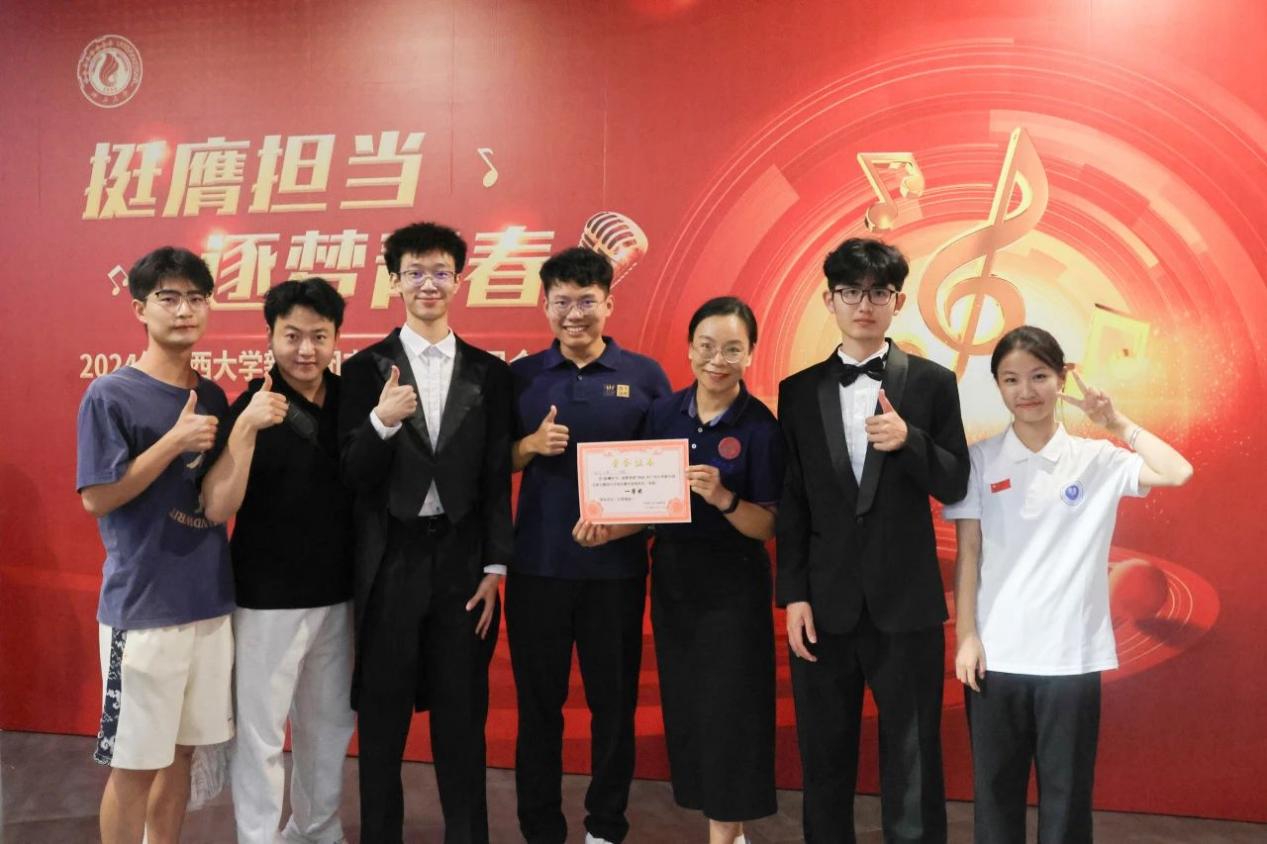 我院團(tuán)委積極組織各新生團(tuán)支部參加比賽,經(jīng)過院賽選拔,由電自242班和自動(dòng)化241班團(tuán)支部組成的隊(duì)伍代表學(xué)院參加校賽。10月20日,廣西大學(xué)新生團(tuán)支部合唱比賽決賽在大學(xué)生活動(dòng)中心一樓大廳舉行,我院在全校27支隊(duì)伍中評(píng)分位列第二名,榮獲一等獎(jiǎng)!
