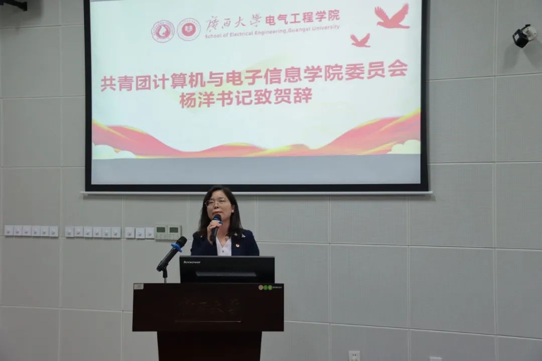 兄弟學(xué)院團(tuán)委代表?xiàng)钛罄蠋熤沦R辭。她表示,在過(guò)去的四年里,電氣工程學(xué)院和計(jì)算機(jī)與電子信息學(xué)院緊密合作,共同策劃并舉辦了形式多樣的團(tuán)日活動(dòng)、學(xué)術(shù)交流以及志愿服務(wù)項(xiàng)目,并誠(chéng)摯希望在未來(lái)兩院能夠繼續(xù)深化合作,為共同培養(yǎng)更多優(yōu)秀的青年人才、推動(dòng)兩院事業(yè)高質(zhì)量發(fā)展貢獻(xiàn)智慧和力量。