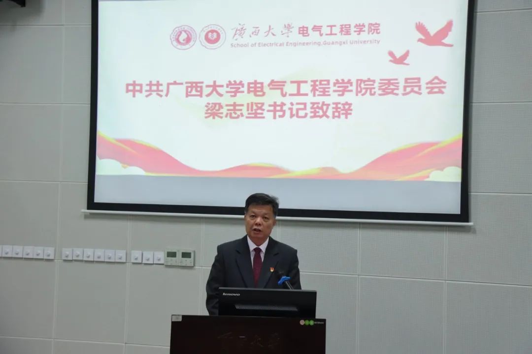 校黨委學(xué)工部(處)部(處)長(zhǎng)、校團(tuán)委書(shū)記謝能重講話,他在講話中肯定了電氣工程學(xué)院團(tuán)委在基層團(tuán)組織建設(shè)、思想引領(lǐng)、創(chuàng)新創(chuàng)業(yè)、社會(huì)服務(wù)等方面取得的優(yōu)異成績(jī),并對(duì)電氣工程學(xué)院團(tuán)委提出三點(diǎn)希望:一是堅(jiān)持為黨育人,加強(qiáng)黨對(duì)廣大青年的政治引領(lǐng),源源不斷為黨輸送健康有活力的新鮮血液;二是堅(jiān)持從嚴(yán)治團(tuán),提升共青團(tuán)改革成效,充分發(fā)揮共青團(tuán)緊緊密切聯(lián)系青年的優(yōu)勢(shì);三是要堅(jiān)持圍繞中心,激勵(lì)青年在中國(guó)式現(xiàn)代化建設(shè)中勇于擔(dān)當(dāng),積極投身中國(guó)式現(xiàn)代化建設(shè)。