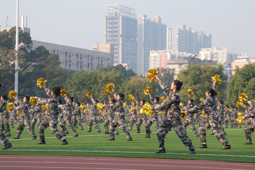 舞步颯爽,英姿盡展。女生們在開場舞中精神昂揚,在匯演中展示卓越風貌,展示青春活力。