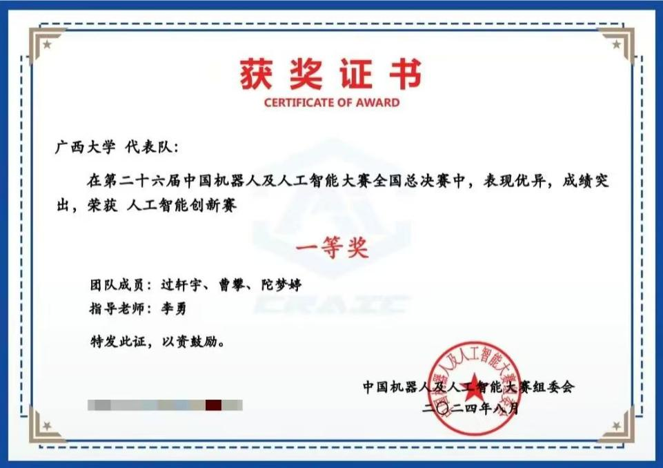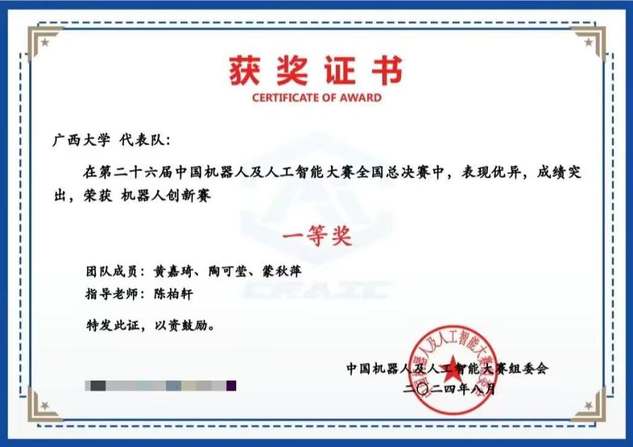 我院學生團隊在2024睿抗機器人開發(fā)者大賽(RAICOM)全國總決賽和該賽事廣西賽區(qū)總決賽中獲得多個獎項。