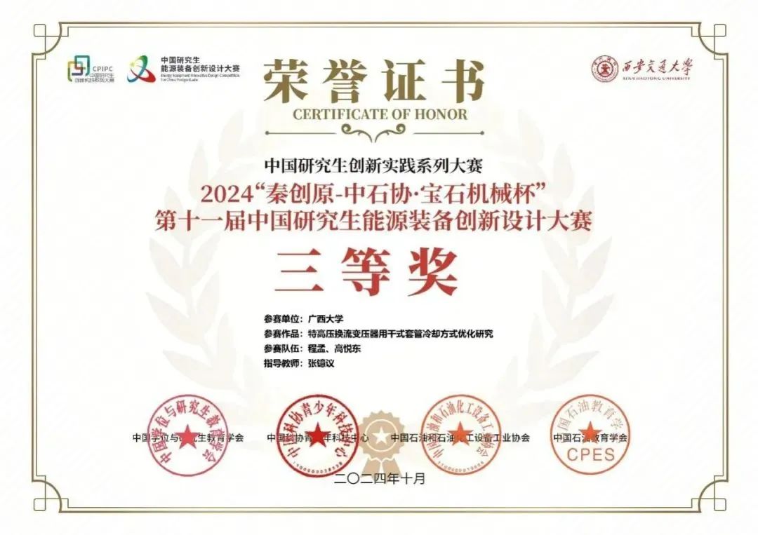 我院研究生在“秦創(chuàng)原—中石協(xié)·寶石機械杯”第十一屆中國研究生能源裝備創(chuàng)新設計大賽獲得三等獎。
