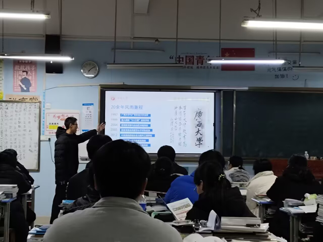 電自245班溫曜旭回到了高中母校,開(kāi)展廣西大學(xué)招生宣傳活動(dòng)。作為活動(dòng)負(fù)責(zé)人,他設(shè)立了風(fēng)雨棚宣講點(diǎn),解答高三學(xué)子的各類(lèi)疑問(wèn);深入班級(jí)宣講,分享大學(xué)生活與專業(yè)信息,激發(fā)同學(xué)們對(duì)未來(lái)的憧憬。他期盼更多學(xué)弟學(xué)妹報(bào)考廣西大學(xué),共譜人生新篇,并決心持續(xù)為招生宣傳助力,圓更多學(xué)子夢(mèng)想。