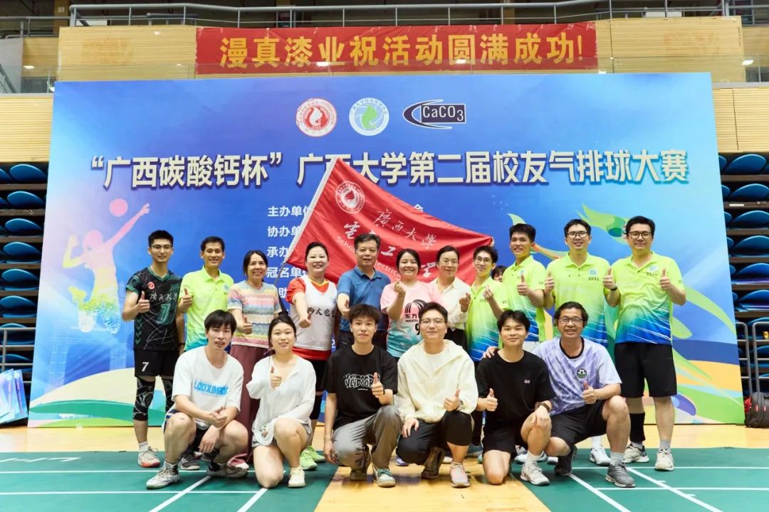 4月19日—4月20日,由廣西大學(xué)校友總會主辦、校工會協(xié)辦、校友排球協(xié)會承辦的“廣西碳酸鈣杯”第二屆校友氣排球大賽在校體育館火熱開展。我院積極動員往屆校友組成代表隊(duì)參賽,憑借精湛的球技、默契的戰(zhàn)術(shù)配合和永不言棄的競技精神,在小組賽、淘汰賽中連克強(qiáng)敵,最終獲得賽事亞軍。