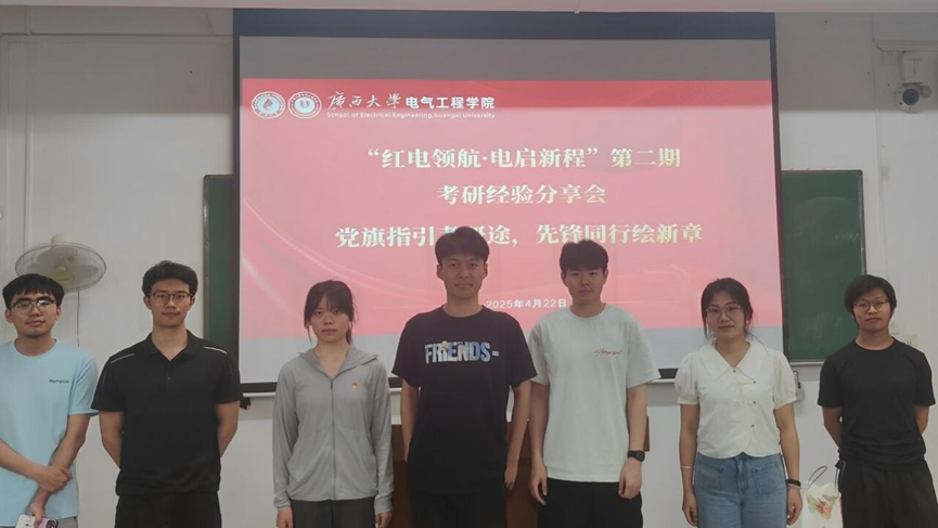 4月22日晚上,我院在西校園第二教學(xué)樓502教室舉辦 “紅電領(lǐng)航?電啟新程”第二期“黨旗指引考研途,先鋒同行繪新章”考研經(jīng)驗分享會。本次分享會由我院黨建工作中心聯(lián)合各學(xué)生黨支部共同開展,旨在為有志于考研的本科生提供指導(dǎo)和交流平臺。 來自不同黨支部的黨員們結(jié)合自身經(jīng)歷,為同學(xué)們帶來了系統(tǒng)實用的考研準(zhǔn)備指南。本科生第一黨支部徐玉超、本科生第二黨支部謝子康、本科生第三黨支部楊宗霖和本科生第四黨支部張冰分享了浙江大學(xué)、湖南大學(xué)、廣西大學(xué)等院校的備考經(jīng)驗。 黨員同志分享考研經(jīng)驗 徐玉超從時間管理角度切入,分析如何科學(xué)制定學(xué)習(xí)計劃,解析公共課與專業(yè)課的時間分配策略;謝子康重點介紹了英語備考的技巧,并提醒同學(xué)們專業(yè)課復(fù)習(xí)的重要性;楊宗霖從早期擇校、初試科目準(zhǔn)備、考研心態(tài)以及學(xué)習(xí)過程中的一些注意事項進(jìn)行經(jīng)驗分享與答疑;張冰聚焦研究生院校與導(dǎo)師選擇,為同學(xué)們提供了切實可行的建議。 黨員同志在分享 此外,來自研究生第一黨支部的何博雯分享了研究生入學(xué)考試面試環(huán)節(jié)的實用技巧,并詳細(xì)講解了調(diào)劑的注意事項。2024級研究生莫皓翔結(jié)合自身經(jīng)歷,講述了本科生與研究生學(xué)習(xí)生活的差異,幫助同學(xué)們更好地理解和適應(yīng)未來的學(xué)術(shù)旅程,鼓勵同學(xué)們以更堅定的信念勇敢逐夢。 何博雯在分享 分享人集體合照 此次考研經(jīng)驗分享會作為學(xué)院“紅電領(lǐng)航”品牌活動的重要實踐,不僅打造了朋輩互助的交流平臺,同時推動紅色精神在學(xué)業(yè)奮斗中的傳承與踐行,通過黨員先鋒的示范作用傳遞了堅持與拼搏的精神力量。參會同學(xué)紛紛表示,學(xué)長學(xué)姐們的傾囊相授既消除了信息壁壘,也為他們的考研之路點亮了一盞明燈,激勵他們在追求升學(xué)夢想的道路上不斷前行。