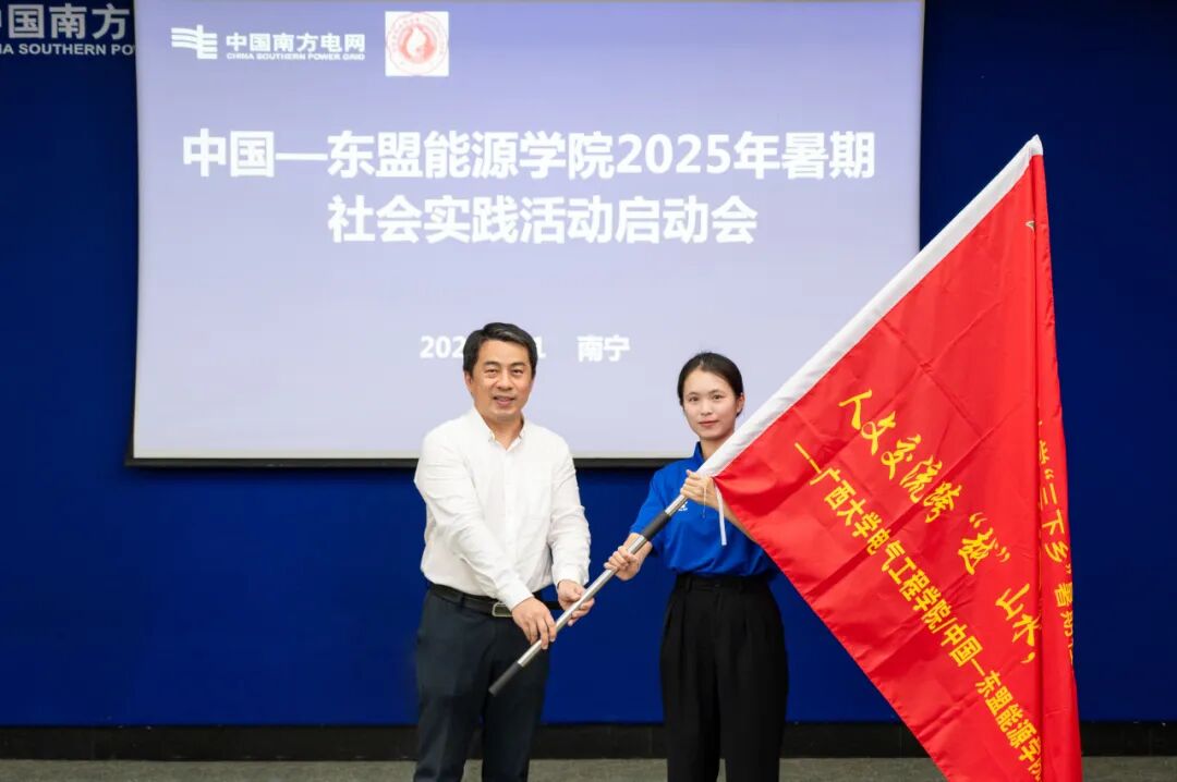 活動(dòng)首站,實(shí)踐團(tuán)來(lái)到廣西電網(wǎng)有限責(zé)任公司,舉行了授旗儀式,正式啟動(dòng)中國(guó)—東盟能源學(xué)院成立后的首期社會(huì)實(shí)踐活動(dòng)。