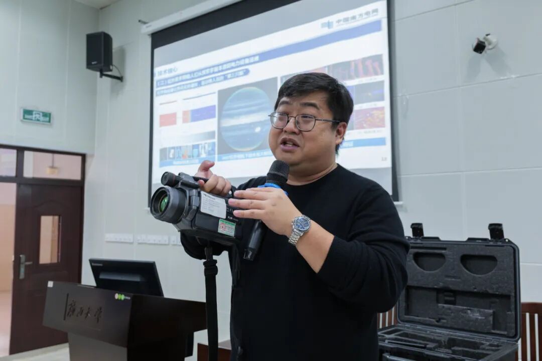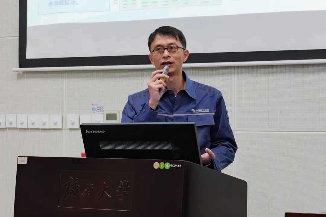 10月24日上午,我院“名師電堂”系列學(xué)術(shù)講座在六二階教室舉行。南方電網(wǎng)超高壓公司南寧局?jǐn)?shù)字化拔尖技術(shù)專家盧英俊高級(jí)工程師、昆明局生產(chǎn)技術(shù)部(生產(chǎn)指揮中心)狀態(tài)監(jiān)測(cè)分析組組長(zhǎng)喬柱橋高級(jí)工程師擔(dān)任主講,我院2024級(jí)、2025級(jí)電氣工程專業(yè)碩士研究生全體參加本次講座。講座由我院電氣工程系主任、學(xué)院iPso研究所所長(zhǎng)陳碧云老師主持。