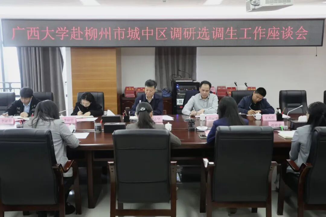 為貫徹落實(shí)學(xué)校黨委關(guān)于選調(diào)生工作的決策部署,受學(xué)校黨委委派,11月5日,我院黨委書(shū)記梁志堅(jiān)帶隊(duì)前往柳州市城中區(qū)走訪調(diào)研選調(diào)生工作。柳州市城中區(qū)常委、組織部部長(zhǎng)覃盧露及有關(guān)負(fù)責(zé)同志參加座談交流。