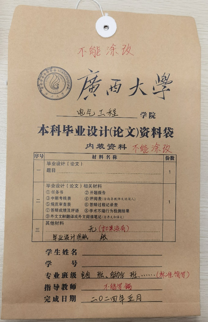 2、各班班長、團(tuán)支書收齊后,到104找教學(xué)秘書拷貝,文件夾命名為:2024屆本科畢設(shè)歸檔材料(2024級)-XX班(班級簡稱)。