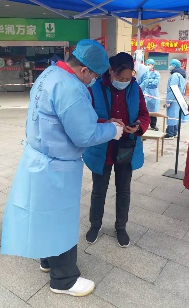 圖1 班靖凱正在檢查市民的健康碼