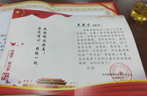 圖5 韋英寸收到的表揚信