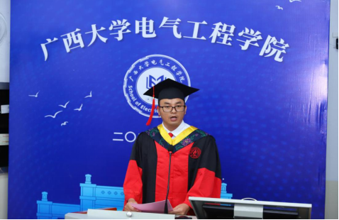 畢業(yè)研究生代表黃乾博士在畢業(yè)感言中,回顧了從本科、碩士再到博士在電氣工程學院的青春年華,表達了對學院老師們辛勤培育的由衷感恩之情,并表示在新的征程里,將以滿腔的熱情,去服務(wù)社會、實現(xiàn)自我。
