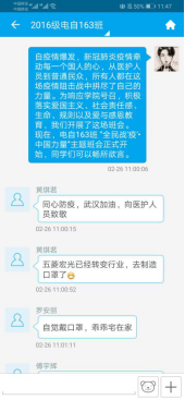 電自173班:在班長(zhǎng)和團(tuán)支書帶領(lǐng)下,同學(xué)們通過(guò)手機(jī)、電腦、電視等途徑了解了疫情的情況,并且對(duì)自己學(xué)習(xí)到的內(nèi)容開(kāi)展了討論。同學(xué)們學(xué)習(xí)到的內(nèi)容多種多樣,有的同學(xué)在人民網(wǎng)、央視網(wǎng)等網(wǎng)站上閱讀了多篇有關(guān)習(xí)近平總書記關(guān)于抗擊疫情工作的重要講話和指示精神。比如全面提高依法防疫依法防控能力,抓緊抓實(shí)抓細(xì)防控疫情工作,健全國(guó)家公共衛(wèi)生管理體系,協(xié)助推進(jìn)新型冠狀肺炎科研攻關(guān)等重大決策。有的同學(xué)閱讀和分享了諸多抗擊疫情期間涌現(xiàn)出來(lái)的英雄人物的故事,比如84歲仍舊出山為抗擊疫情奉獻(xiàn)的鐘南山院士,身患漸凍癥仍堅(jiān)持奮戰(zhàn)在抗疫一線武漢金銀潭醫(yī)院院長(zhǎng)張定宇等。學(xué)習(xí)之后,同學(xué)們?cè)诎嗉?jí)群里展開(kāi)了熱烈的討論,發(fā)表了自己的看法。同學(xué)們?yōu)閲?guó)家遭受危難時(shí)展現(xiàn)出來(lái)的大愛(ài)無(wú)疆的精神而感動(dòng),為中國(guó)作為世界大國(guó)面對(duì)危機(jī)時(shí)臨危不亂的氣度感到自豪,為一位位抗戰(zhàn)在一線的人們的英勇無(wú)畏的精神而折服,為中國(guó)能夠度過(guò)這次難關(guān)充滿信心。