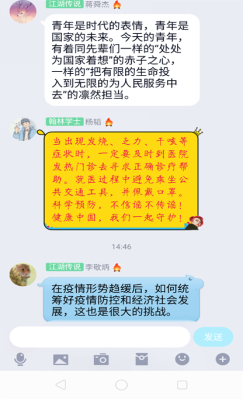 研究生193班徐丹陽(yáng)(湖北籍):四位老師分別從中國(guó)舉措、疫情啟示、歷史磨難、青春蝶變四個(gè)角度為我們深刻講解了當(dāng)下疫情的思考,也給了我很多啟發(fā)。
