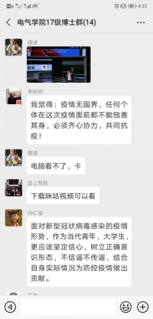 17級(jí)覃建波博士:今天下午,我準(zhǔn)時(shí)通過(guò)手機(jī)觀看學(xué)習(xí)防控疫情思政網(wǎng)絡(luò)大課,通過(guò)本次防控疫情思政課的學(xué)習(xí),我有以下一些認(rèn)識(shí)和感想: