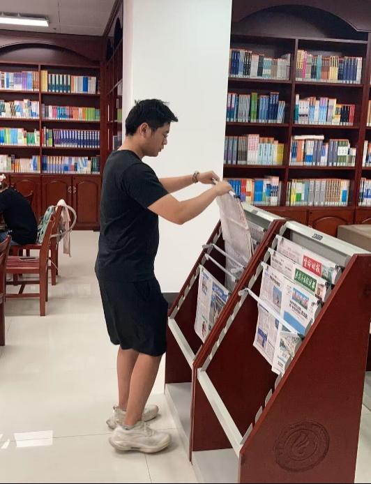 在短暫的兩個小時內,支部黨員分為六組前往圖書館不同樓層書庫開展工作,充分發(fā)揮出團隊的力量。一些同志負責在值班臺值班,為前來學習的讀者提供熱情解答和幫助;另一些同志則投身于整理書籍工作,耐心地將散亂的書本有序地放回各自的位置;還有一些同志專心修補破損的書籍,將它們重新煥發(fā)出完好的面貌,為借書的讀者提供更好的閱覽體驗。志愿活動完成后,大家紛紛與校圖書館老師拍照留念。