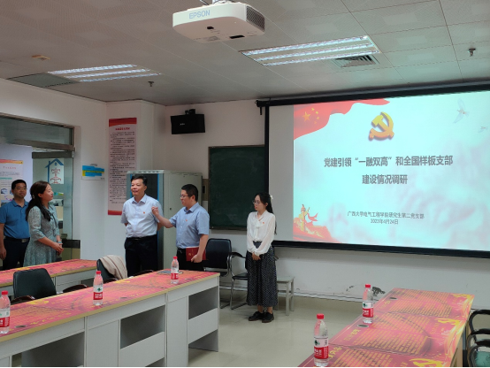 調(diào)研活動(dòng)議程如下:廣西大學(xué)電氣工程學(xué)院黨委書記梁志堅(jiān)介紹學(xué)院黨建引領(lǐng)“一融雙高”建設(shè)、東北財(cái)經(jīng)大學(xué)統(tǒng)計(jì)學(xué)院黨總支書記蔡曉琳介紹調(diào)研內(nèi)容、電氣工程學(xué)院研究生第二黨支部書記徐俊華介紹全國(guó)樣板支部建設(shè)情況及亮點(diǎn)、雙方交流、參觀廣西大學(xué)電氣工程學(xué)院研究生第二黨支部活動(dòng)室。