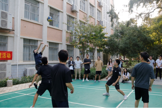 本次比賽電氣研二支部和土木研十支部各派出三支隊伍出戰(zhàn),比賽采用積分制的形式,前六場循環(huán)賽后由勝場最多的隊伍進行最后的決賽。賽場上,運動員團結協(xié)作,配合默契,迅猛的發(fā)球、巧妙的攔網(wǎng)、精彩的扣殺,迎來一個又一個比賽高潮。球員奮力拼搏,觀眾熱情加油,比賽扣人心弦,精彩場面隨處可見。
