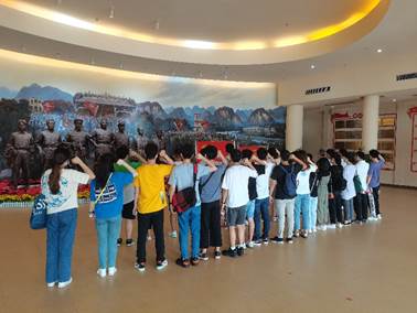 在小木棉志愿講解員的帶領(lǐng)下,黨員同志們沿著紀念館里當年紅軍走過的長征路,聆聽著講解員講述長征路上各位英烈們浴血奮戰(zhàn)、奮勇拼搏的英雄事跡,紛紛為之震撼,敬仰之情充盈于心。隨后全體黨員又跟隨著講解員前往廣西國防教育館繼續(xù)進行參觀。通過豐富的圖片,逼真的模型、詳細的解說,支部全體黨員深刻感受到了我國新時代氣勢磅礴的大國國防力量。最后,全體黨員前往革命烈士紀念碑公祭廣場,為英烈們默哀三分鐘,作為本次黨日活動的結(jié)尾。