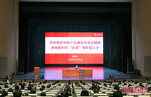 12月1日下午,校黨委書記劉正東以《學(xué)好用好黨的十九屆五中全會精神,勇做新時代“五有”領(lǐng)軍型人才》為題,在匯學(xué)堂為我校師生講授了一堂精彩的形勢與政策課。電氣工程學(xué)院組織750多名新生、全體輔導(dǎo)員在第六教學(xué)樓五個分會場觀看報告會直播,學(xué)院主要領(lǐng)導(dǎo)、師生代表在主會場匯學(xué)堂參加報告會。