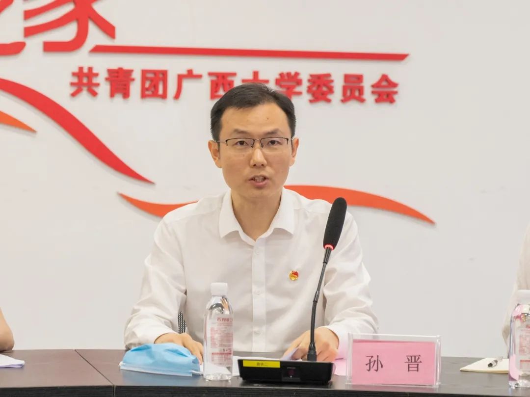孫晉表示很高興在紅色五月參加此次團(tuán)日活動,他從五個方面對廣西青年提出了要求,他認(rèn)為新時代廣西青年應(yīng)該牢記初心使命,做到心中有信仰,腳下有力量;應(yīng)當(dāng)練就過硬本領(lǐng),做到刻苦學(xué)習(xí),銳意創(chuàng)新。應(yīng)當(dāng)勇于攻堅(jiān)克難,敢于斗爭,善于斗爭;要勇于吃苦,艱苦奮斗,學(xué)習(xí)和弘揚(yáng)雷鋒精神;應(yīng)該錘煉高尚品德,爭做向善向上好青年,同學(xué)們要心存戒懼,牢記“從善如登,從惡如崩”的古訓(xùn),嚴(yán)格遵紀(jì)守法,明辨是非。