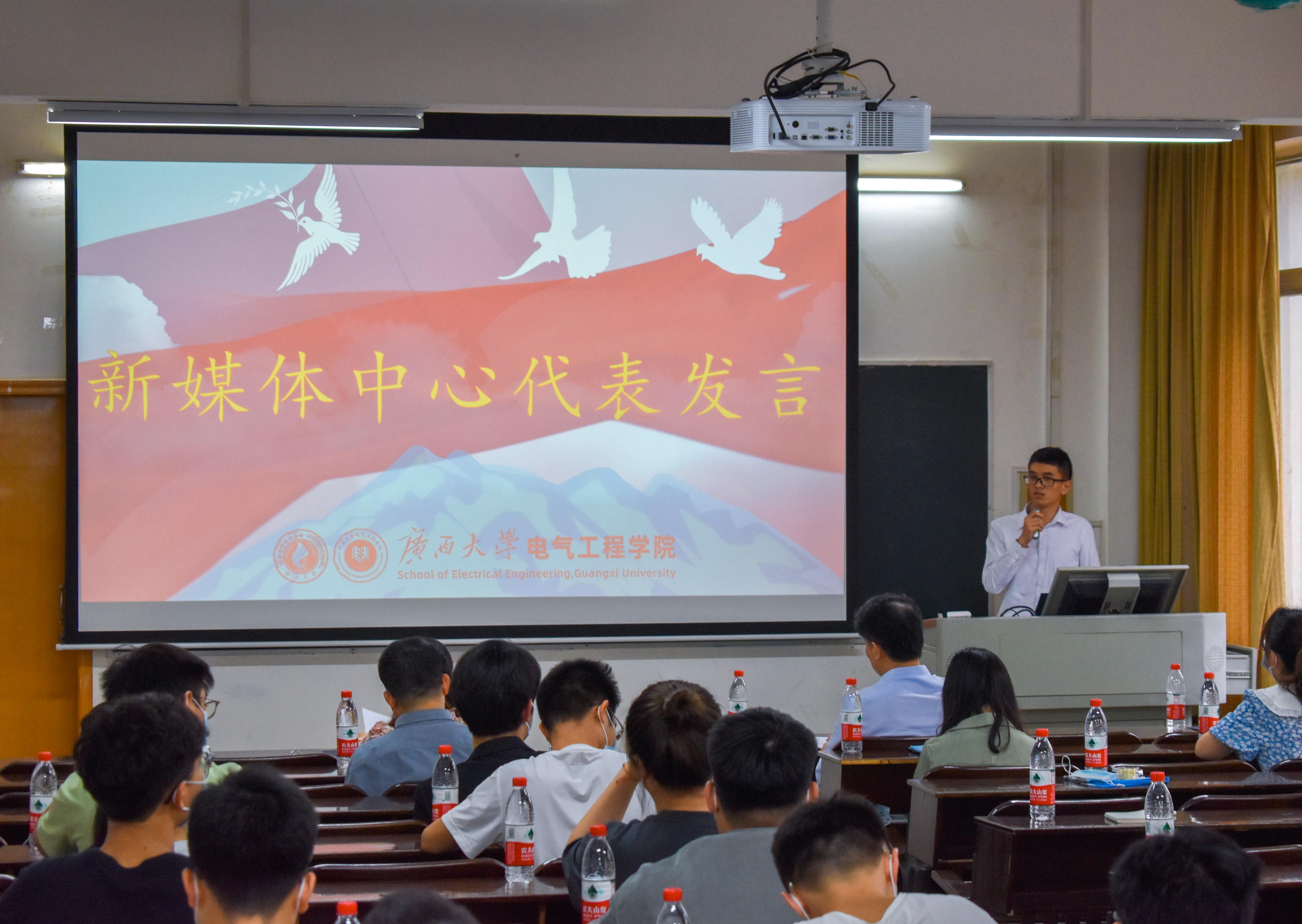 2022年4月12日, 廣西大學(xué)電氣工程學(xué)院學(xué)生新媒體中心成立大會(huì)在學(xué)院304教室召開。學(xué)院黨委書記梁志堅(jiān)出席本次會(huì)議并致辭,黨委副書記雷圓媛宣讀學(xué)生新媒體中心第一屆成員名單。輔導(dǎo)員李鵬、李娟、李楠,兼職輔導(dǎo)員張寶丹、張冬林和黨支部、院學(xué)生會(huì)、院研究生會(huì)、眾創(chuàng)空間學(xué)生代表參加此次會(huì)議。會(huì)議由輔導(dǎo)員韋俞妃主持。