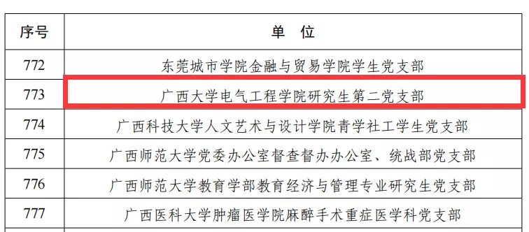 根據(jù)《教育部辦公廳關于公布第三批全國黨建工作示范高校、標桿院系、樣板支部培育創(chuàng)建單位名單的通知》(教思政廳函〔2022〕4號),經(jīng)省級黨委教育工作部門推薦、資格審查、專家評審、教育部黨的建設和全面從嚴治黨工作領導小組成員單位集中審議,廣西大學電氣工程學院研究生第二黨支部獲評第三批“全國黨建工作樣板支部”培育創(chuàng)建單位。
