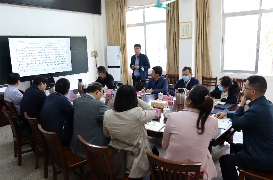 參觀后,一行人在電氣工程學(xué)院與學(xué)院領(lǐng)導(dǎo)班子、系負(fù)責(zé)人座談,交流一流學(xué)科建設(shè)工作。座談中,雙方相關(guān)負(fù)責(zé)人分別介紹了各自學(xué)院在上一輪廣西一流學(xué)科建設(shè)中師資、科研、成果轉(zhuǎn)化等方面的情況,并就學(xué)科建設(shè)中存在的問題、人才引進(jìn)工作等進(jìn)行了交流。