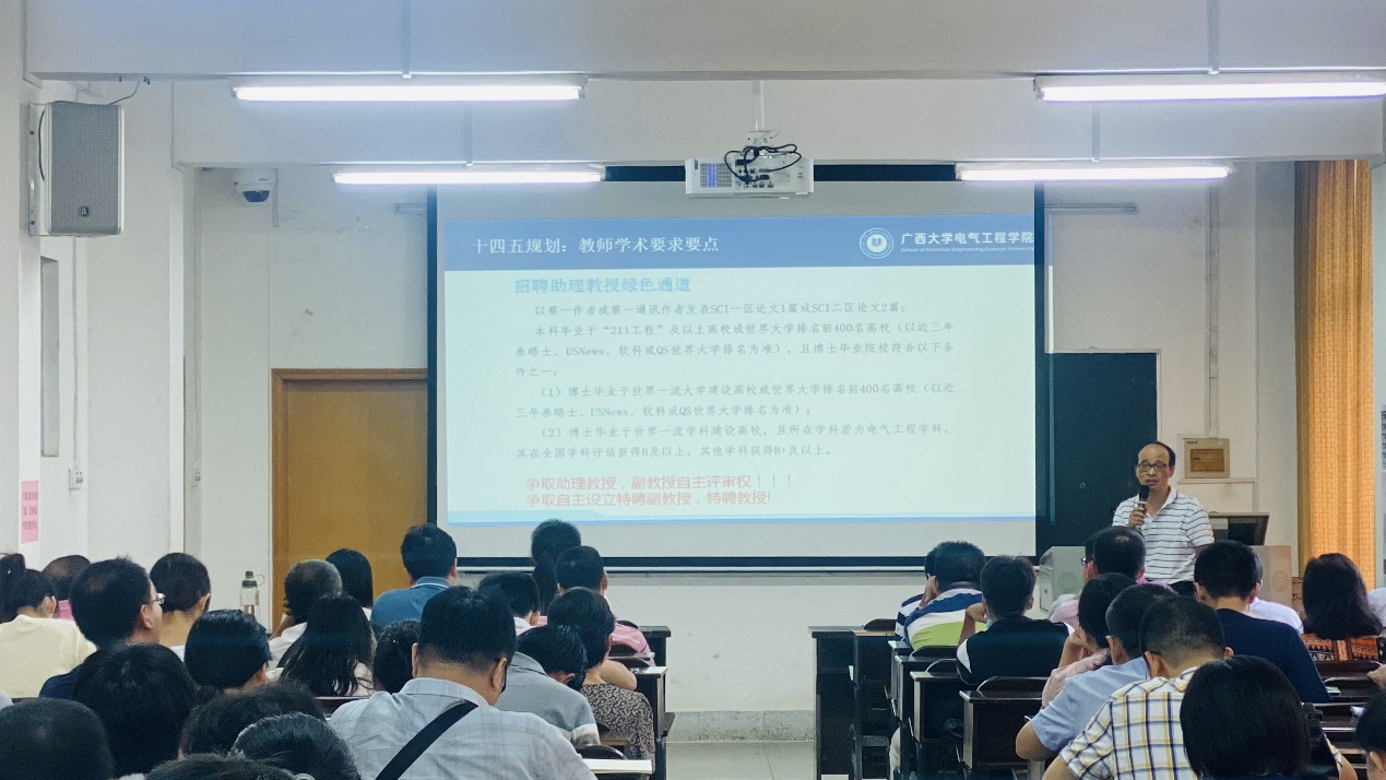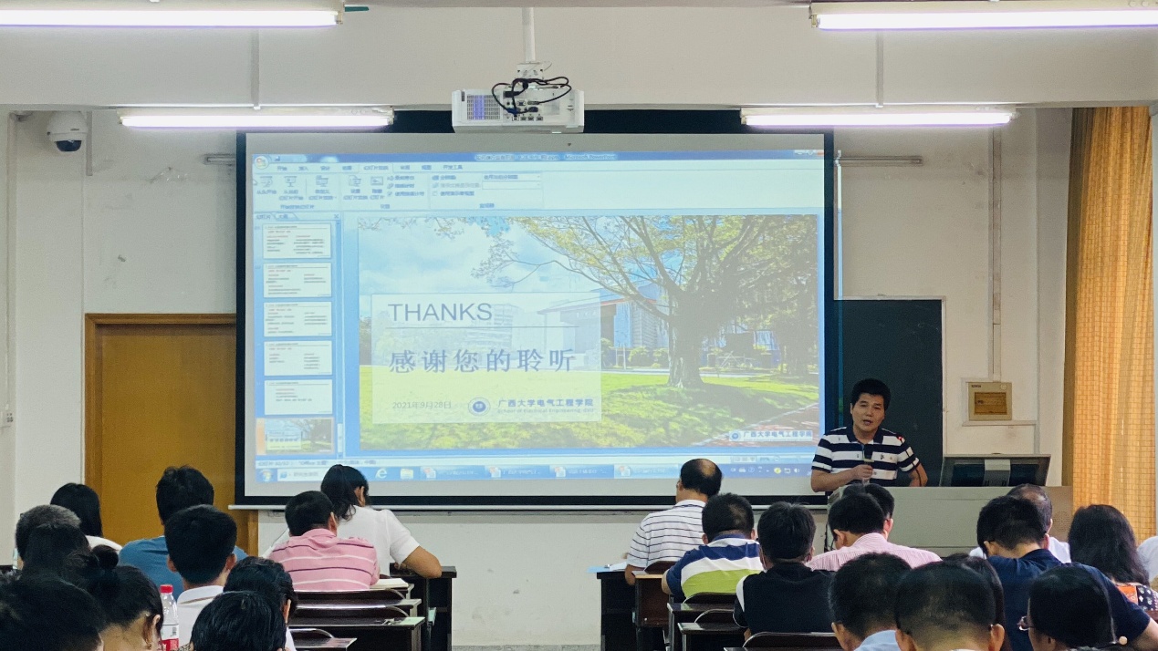 雙豐院長(zhǎng)總結(jié)了學(xué)院上半年的工作,并介紹下半年學(xué)科建設(shè)、研究生管理、科研管理、學(xué)生工作和行政管理等各項(xiàng)工作計(jì)劃,重點(diǎn)說明了學(xué)院“十四五”規(guī)劃編制的情況以及與廣西電科院聯(lián)合組建的自治區(qū)重點(diǎn)實(shí)驗(yàn)室情況。