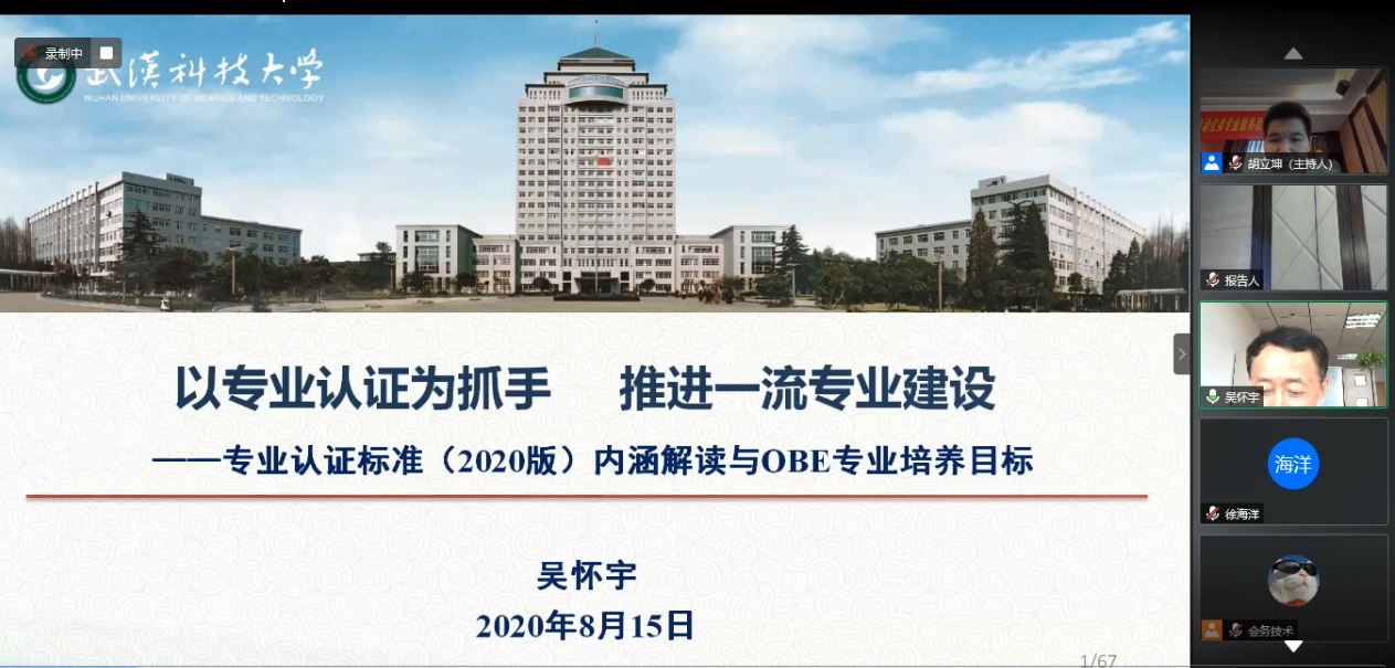 1. 以專業(yè)認(rèn)證為抓手,推進(jìn)一流專業(yè)建設(shè)----武漢科技大學(xué)副校長(zhǎng)吳懷宇教授