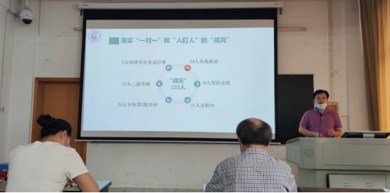 隨后,輔導(dǎo)員蔣冬連做了進(jìn)一步就業(yè)數(shù)據(jù)的對(duì)比說(shuō)明,并從輔導(dǎo)員角度分享了工作過(guò)程中的一些經(jīng)驗(yàn)做法。參會(huì)班主任們也對(duì)近段時(shí)間工作中的經(jīng)驗(yàn)做法和遇到的問(wèn)題進(jìn)行了交流討論并提出相應(yīng)的建議。