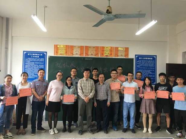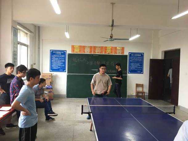 值廣西大學(xué)90周年校慶來臨之際,上午9點,第五屆電氣工程學(xué)院研究生乒乓球賽男單決賽在學(xué)院205乒乓球室進(jìn)行,電氣工程學(xué)院黨委書記梁京章老師、黨委副書記梁志堅老師、學(xué)工組輔導(dǎo)員孫曉黎老師作為嘉賓觀看比賽并頒獎。